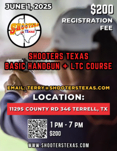If you have any questions, call or text Terry Barber at 214-734-0812 or email me at terry@shooterstexas.com